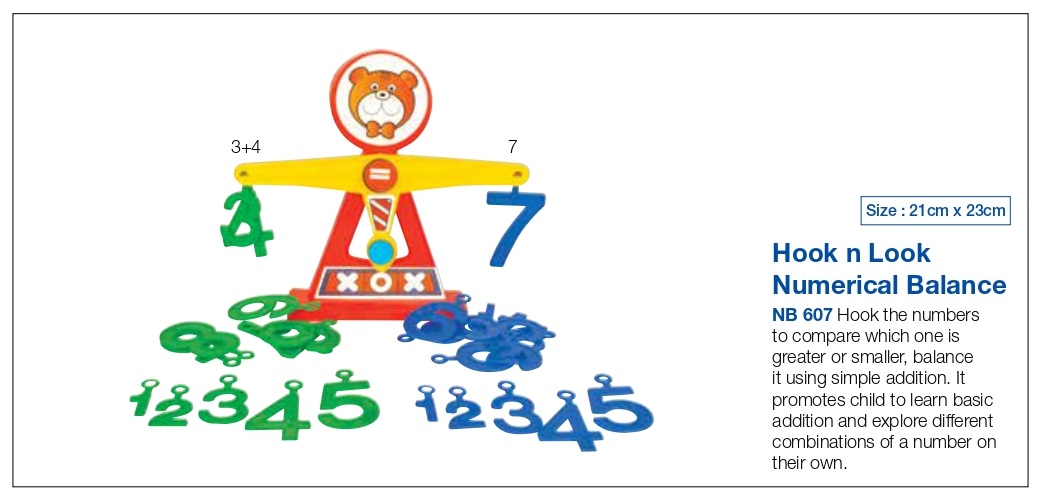 Hook the numbers to compare which one is greater or smaller, balance it using simple addition. It promotes children to learn basic addition and explore different combinations of a number on their own.
