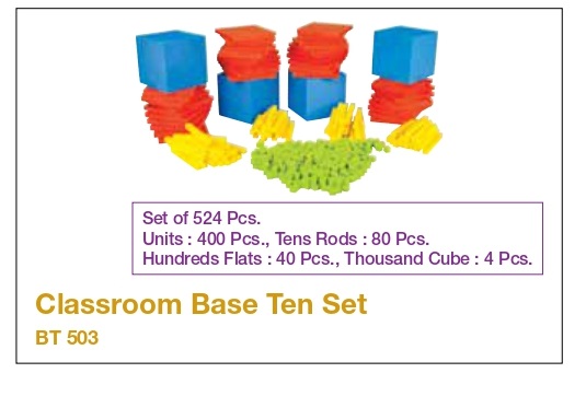 Units: 400 pcs, Tens Rods: 80 pcs, Hundred Flats: 40 pcs, Thousand Cube: 4 pcs.