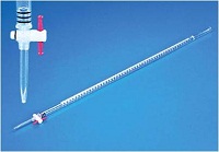 A burette is a precise laboratory instrument used to measure the volume of liquids in titrations and other chemical experiments.